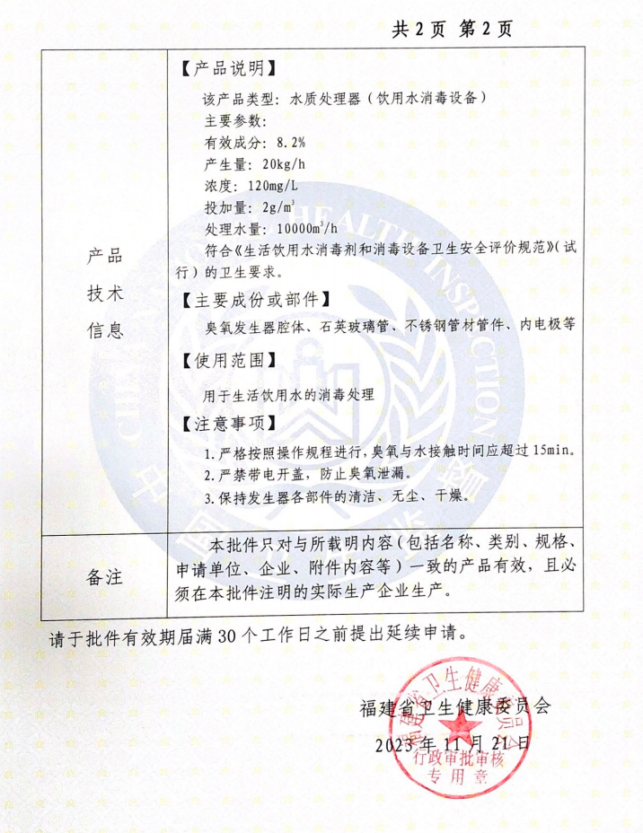 • 臭氧發(fā)生器產量及各技術參數簡述